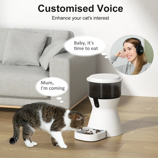 Automatic Cat Feeders Wifi, Timed Dog Feeder with 10S Dining Voice Record, 4L Cat/Dog Food Dispenser